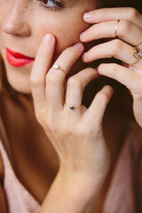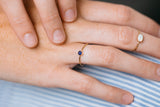Featuring a 3mm round Sapphire Cabochon, the deep blue of this striking gemstone is bound to catch the eye. Derived from the Latin word "saphirus" meaning "blue", the sapphire has long since been associated with wisdom and good fortune.