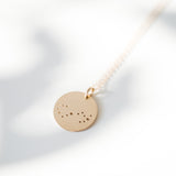 The Scorpio zodiac constellation necklace is a dainty, everyday jewellery staple that'll be a trusted companion for any occasion. The tiny hand drilled punctures map out the Scorpio zodiac constellation in order to remind you of your guiding stars. We kept the look of the pendant minimalist and simple in order to preserve the mysticism and delicate beauty of star constellations.