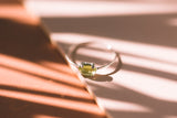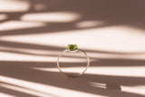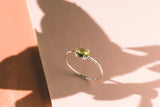 Old world beauty meets modern minimalism. The oval stone is held in place by four prongs that allow the light to play effortlessly with the subtle green of the gemstone. Known as the stone of compassion, the peridot is the August birthstone and brings increased well being through peaceful sleep.