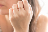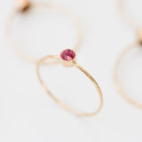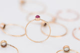 Ah the Ruby, a captivating red gemstone which stirs the imagination and captures the essence of passion. The Ruby Ring features a genuine rose cut ruby and is particularly gorgeous when paired with our dainty or open ring.