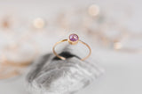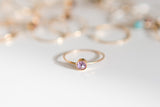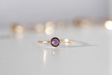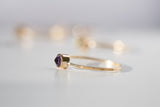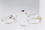 Amethyst is said to encourage tranquility. The alluring purple of the gemstone dispels fear and doubt, and so our Amethyst ring is a way to consolidate those wonderful properties and pass it on to you. This faceted gemstone is set with the pointed side up, providing a striking look without sacrificing the minimalist design.